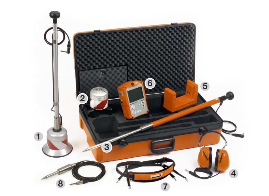 El Aquaphon A100 es el nivel 2 en cuanto a geoófonos se refiere. Este equipo viene con bastón y micrófono de suelo para zonas pavimentadas y una pantalla LCD que muestra en su pantalla una comparación precisa de los diferentes niveles de sonido durante las detecciones.